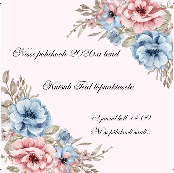 Nissi Põhikooli 9. klassi pidulik lõpuaktus toimub 12.06 kell 14.00.